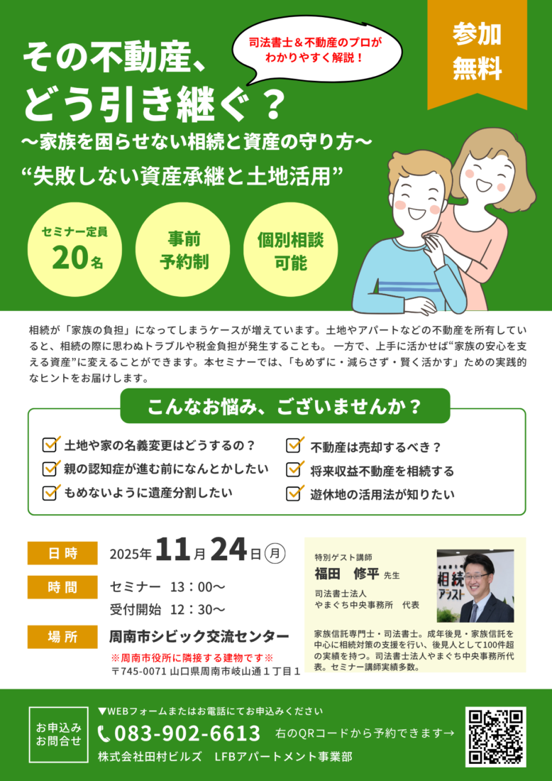 【司法書士登壇】周南市で開催決定!相続対策セミナー