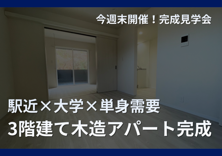 月: 2026年3月 イベント 2026.03.05 今週末開催!木造3階建てアパートが完成 Categoryカテゴリー 工事進捗状況 お知らせ 物件情報 イベント STYLE 書籍「地方都市で叶える満室アパート経営」 新シリーズ Archiveアーカイブ 2026 1月 (3件) 2月 (5件) 3月 (1件) 2025 1月 (6件) 2月 (3件) 3月 (3件) 4月 (6件) 5月 (3件) 6月 (5件) 7月 (5件) 8月 (2件) 9月 (2件) 10月 (2件) 11月 (3件) 12月 (3件) 2024 1月 (3件) 2月 (4件) 3月 (5件) 4月 (5件) 5月 (3件) 7月 (8件) 8月 (3件) 9月 (2件) 10月 (4件) 11月 (3件) 12月 (5件) 2023 1月 (3件) 2月 (4件) 3月 (4件) 4月 (5件) 5月 (3件) 6月 (3件) 7月 (5件) 8月 (4件) 9月 (4件) 10月 (4件) 11月 (4件) 12月 (4件) 2022 1月 (4件) 2月 (4件) 3月 (5件) 4月 (4件) 5月 (4件) 6月 (5件) 7月 (4件) 8月 (4件) 9月 (3件) 10月 (5件) 11月 (4件) 12月 (4件) 2021 6月 (4件) 7月 (5件) 8月 (4件) 9月 (5件) 10月 (4件) 11月 (4件) 12月 (5件)